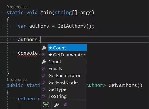 为了简化,我省略了对数据库繁琐的操作,下面的代码展示了如何在 Main 方法中调用 GetAuthors() 方法。static void Main(string[] args)