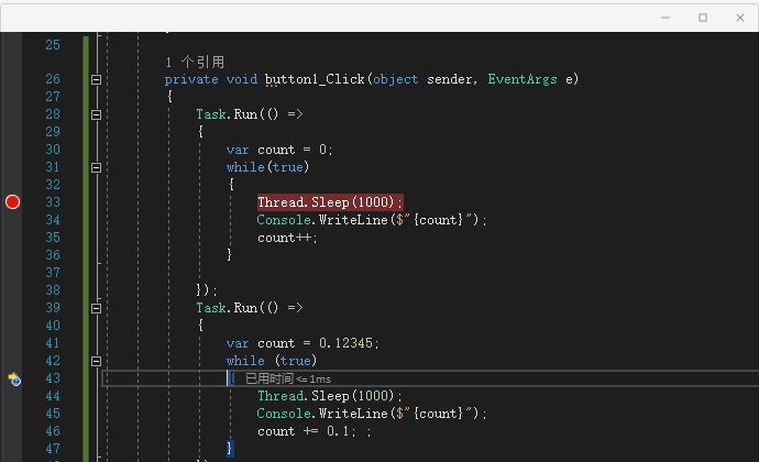 比如以下示例:开了两个线程