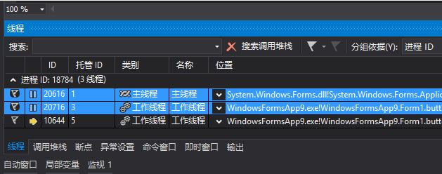 4、利用vs自带的线程窗口来调试