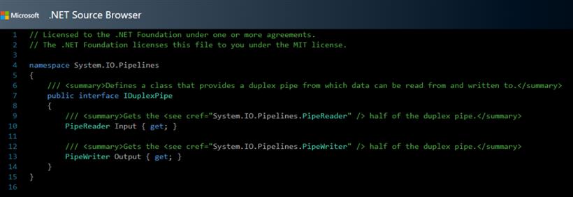 等待 AcceptStreamAsync 方法直到接收到一个 Stream,使用 stream.Transport.Input 写入数据,stream.Transport.Output 读取数据。var stream = await session.AcceptStreamAsync(CancellationToken.None); var inputPipe = stream.Transport.Input; var outputPipe = stream.Transport.Output;