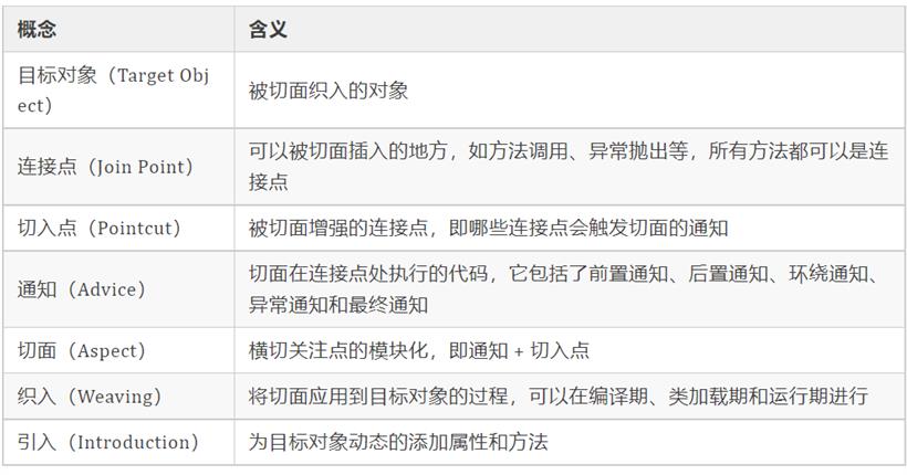 织入(Weaving):将切面应用到目标对象并创建新的代理对象的过程。