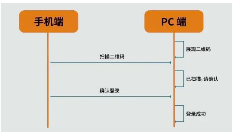 比如账号密码登录,账号就是告诉系统我是谁, 密码就是向系统证明我是谁; 比如手机验证码登录,手机号就是告诉系统我是谁,验证码就是向系统证明我是谁;那么扫码登录是怎么做到这两件事情的呢?我们一起来考虑一下。手机端应用扫 PC 端二维码,手机端确认后,账号就在 PC 端登录成功了!这里,PC 端登录的账号肯定与手机端是同一个账号。不可能手机端登录的是账号 A,而扫码登录以后,PC 端登录的是账号 B。