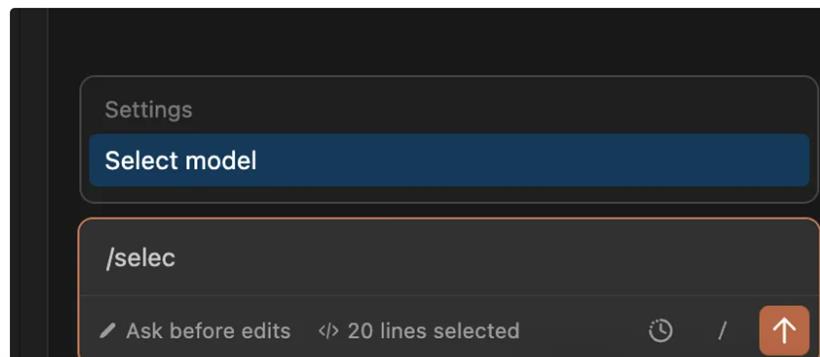 再次打开插件,在Chat框中输入 /select 快捷命令,选择 Select model