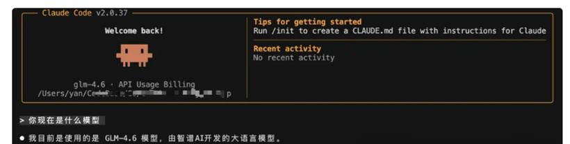 //堆代码 www.duidaima.com npm install -g @anthropic-ai/claude-code安装成功后,我们按照智谱网站上推荐的配置设置 ~/.claude/settings.json