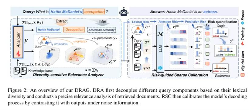 DRAG 的核心思想,就是“具体问题具体分析”,它有两个法宝:一个是“多样性感知相关性分析器”(Diversity-sensitive Relevance Analyzer, DRA),另一个是“风险引导稀疏校准策略”(Risk-guided Sparse Calibration, RSC)。