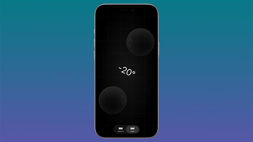 苹果的"测距仪"应用现在为其水平仪功能采用了液态玻璃设计,使用两个液态玻璃气泡代替了之前的白色圆圈。