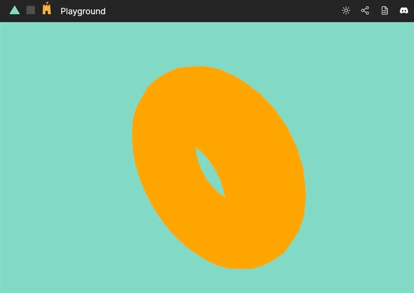 现在让我们看看如何使用 TresJS 轻松实现相同的事情。为此,我们将使用 <TresMesh /> 组件,在默认插槽之间,我们将传递一个 <TresTorusGeometry /> 和一个<TresMeshBasicMaterial />。