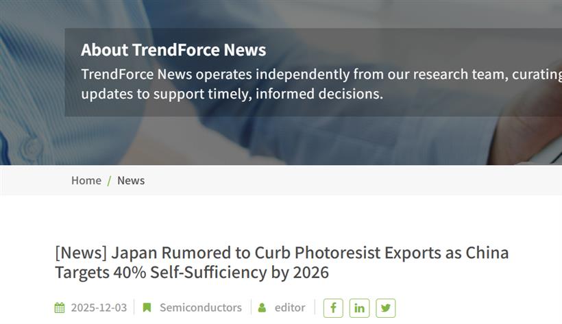 《亚洲时报》报道则提到,11月中旬前后,中国大陆社交媒体上曾出现未经证实的消息,称佳能、尼康及三菱化学已停止供应光刻胶。但报道指出该说法存在疑问:佳能与尼康主要生产光刻机及其零部件,而三菱化学提供的仅为光刻胶原料Lithomax。