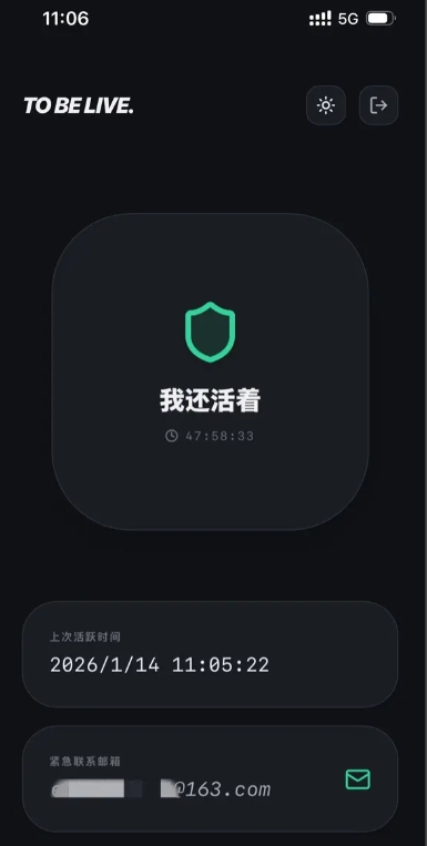 于是,我连夜敲代码,搞出了这款对标产品—— “活着呢”(TO BE LIVE) 。