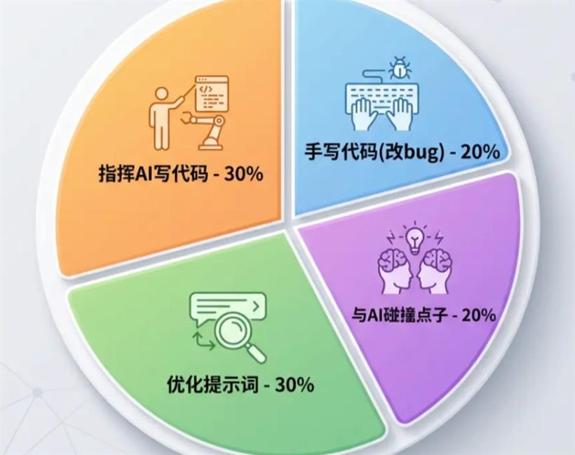 工作时间分配上,也从之前的「大部分时间手写代码」变成了: