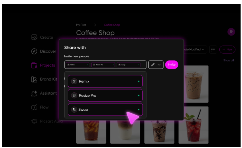 Picsart 表示,每周都会上线更多垂直领域的专用智能体,目前已率先推出四款:Flair、Resize Pro、Remix、Swap。