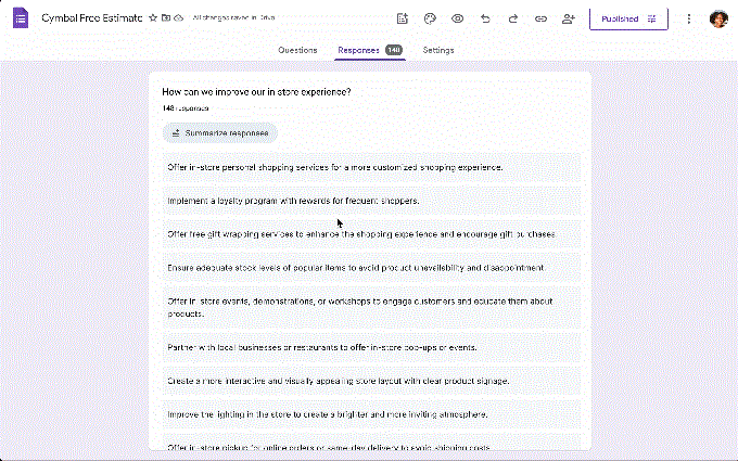 表单里的 Gemini 支持你描述需求(比如一份调查问卷),然后自动生成完整表单,包含合适的问题和结构。它还能帮你优化问题:提供更清晰的措辞、更合理的答案格式,并找出表单里可能导致回答不完整或质量偏低的漏洞,尤其适合收集可落地的数据。此外,随着反馈收集,Gemini 可以实时总结结果,突出趋势和关键结论,你不用再手动分析原始数据。不用导出回复到其他工具分析,在表单内就能直接获得直观洞察。