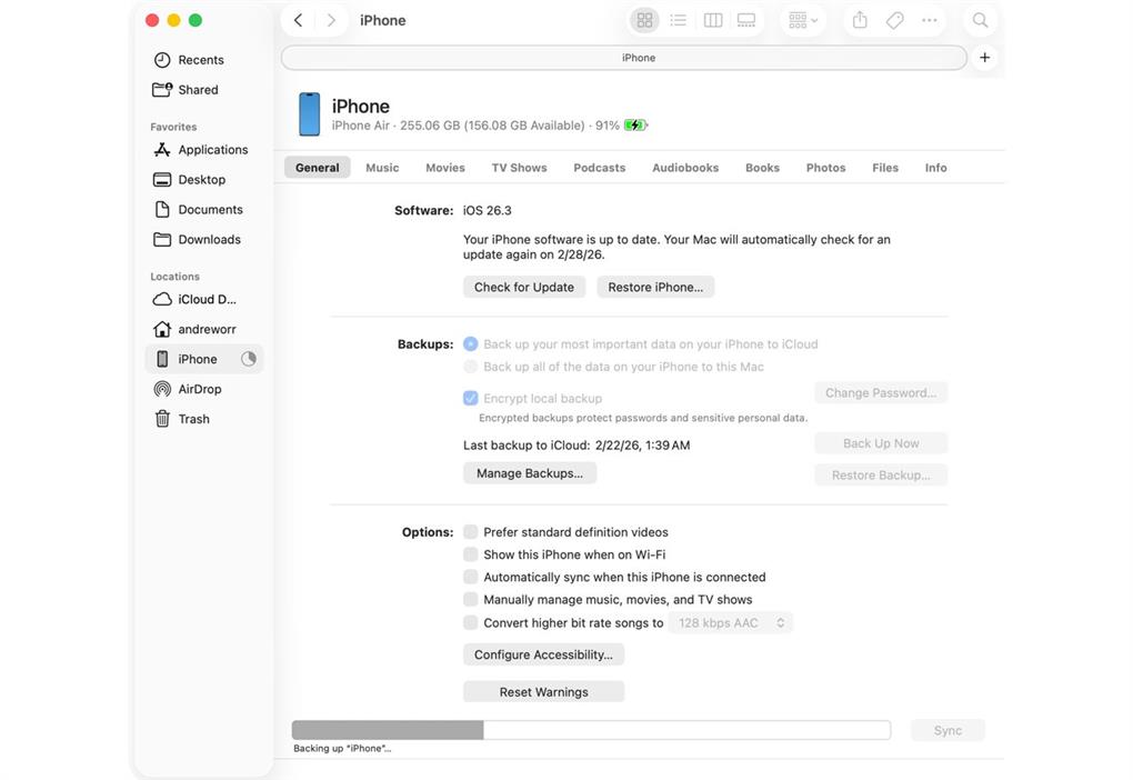 不同于云端备份,本地备份相当于给你的设备拍了一张完整的系统快照:它会完整留存你的设备设置、聊天记录、应用数据,甚至是机身本地储存的影音文件。虽然 iCloud 备份也能保存数据,但从 Mac 恢复资料的速度要快得多 —— 所有数据都可以通过 USB 直连传输,省去了云端下载的等待时间。很多人担心备份会占用大量时间,其实不然:整机初次备份仅需几分钟,只有当你的设备存储了海量数据时,首次备份的耗时才会稍久。而后续的备份均为增量备份,macOS 只会储存上一次备份后新增、改动的内容,日常的备份维护省时又便捷,完全不会占用你太多精力。