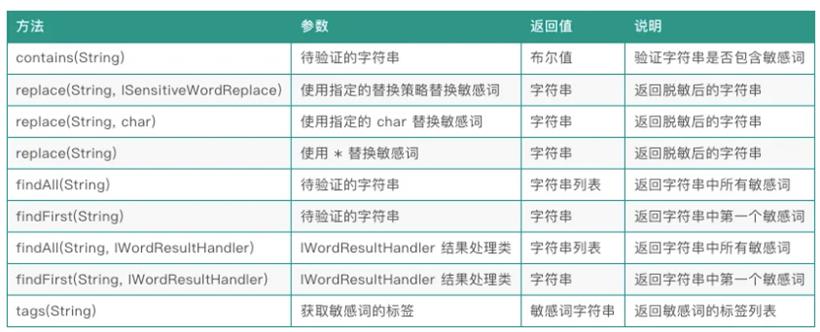 SensitiveWordHelper 作为敏感词的工具类,核心方法如下: