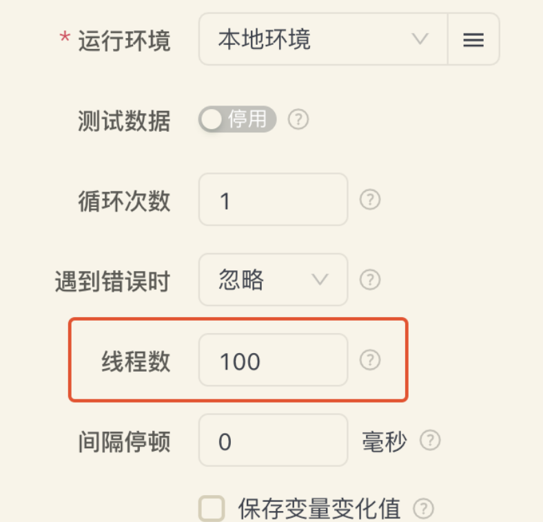 代码很简单,只是打印了一下线程名,然后休眠0.5秒,这样肯定会导致部分请求处理一次性处理不了而进入到等待队列。然后我用Apifox创建了一个测试用例,去模拟100个请求: