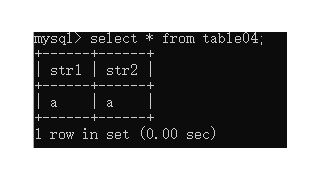 CREATE TABLE `table04` ( `str1` varchar(10) DEFAULT NULL, `str2` varchar(1) DEFAULT NULL ) ENGINE=InnoDB DEFAULT CHARSET=utf8插入数据:
