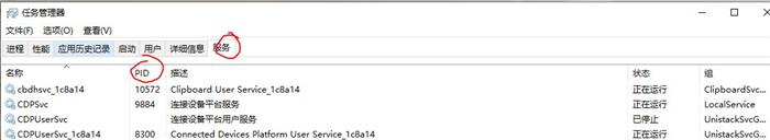 3.打开任务管理器-服务或进程,找到对应的PID对应的服务或进程就可以了