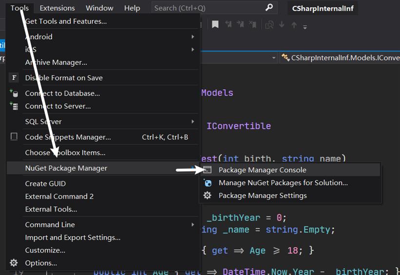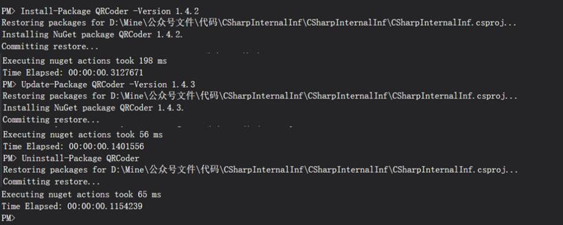 // 堆代码 duidaima.com Install-Package 包名 [-Version 版本号] //安装 Update-Package 包名 [-Version 版本号] //更新 Uninstall-Package 包名 //卸载