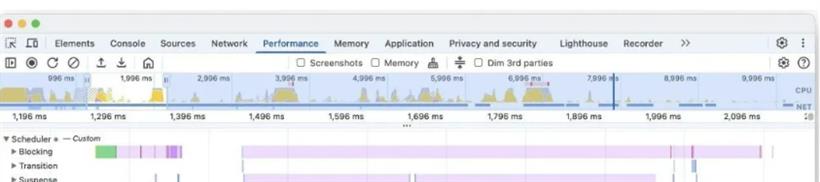 React Performance Tracks 提供内置工具追踪渲染路径和瓶颈,支持与 React DevTools 集成。开发者可监控组件渲染时间、状态更新和调度优先级,帮助诊断慢渲染问题。新版本添加了 Scheduler 支持,允许细粒度控制任务优先级。