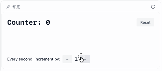 这样,我们就可以保证在 useEffect 的回调函数中,使用的 increment 值始终是最新的值,又不用把 increment 作为依赖项。完整的代码如下所示