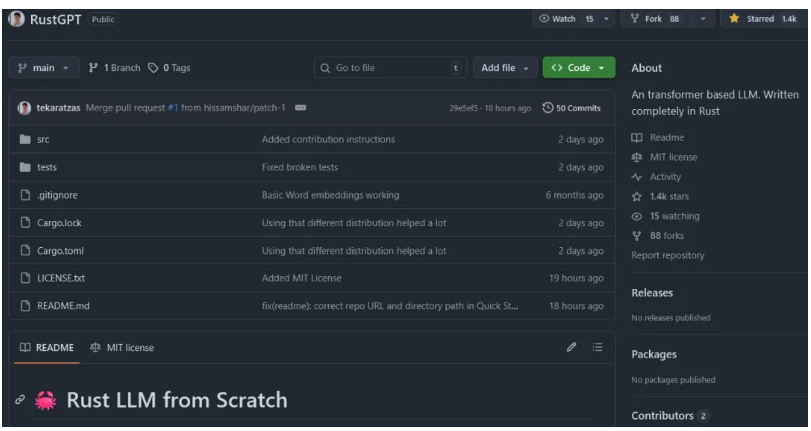 Python凭借它“人生苦短,我用Python”的潇洒,还有背后庞大的生态库,稳坐AI界的头把交椅,从入门小哥到学术大牛,人人都爱它。而Rust以其“内存安全、零成本抽象、无畏并发”三件法宝,正在受到大公司和开发者们的青睐。一个用纯Rust从零开始实现完整大语言模型的项目RustGPT,在GitHub上火了,两天星标超过1.4k。该项目没有外部ML框架,仅使用ndarray从头开始构建矩阵运算来实现。