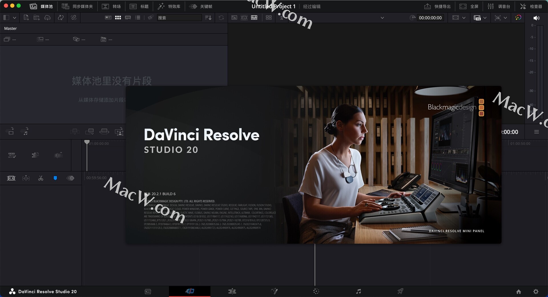 软件打开后,点击左上角的DaVinci Resolve,选择Preferences选择UI Settings—>user—>language,选择简体中文!