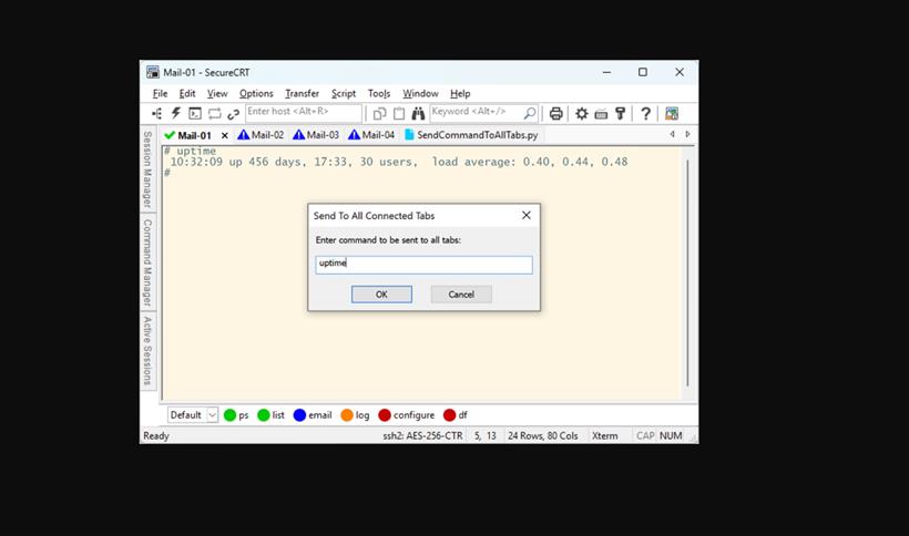 SecureCRT这款终端SSH仿真工具的强大的之处在于不用电脑就可以直接远程监控你的设备,SecureCRT的特点包括文本手稿、易于使用的工具条、用户的键位图编辑器、可定制的ANSI颜色等。SecureCRT的SSH协议支持DES,3DES和RC4密码和密码与RSA鉴别。