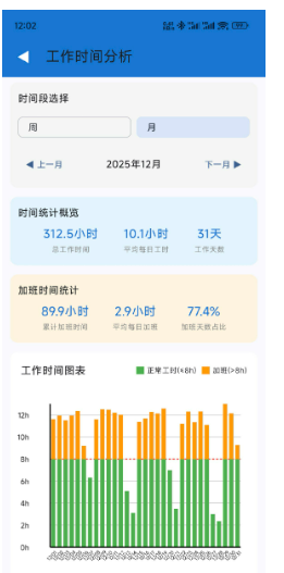 12 月工作了 312.5 小时,周末半天休息