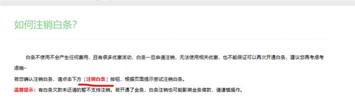 点击如下页面的注销白条几个字就可以进入京东注销白条的操作界面了。